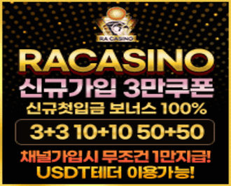 처음 회원 가입 후 정상회원으로 승인되면 3만원 무료쿠폰을 받게된다. 또한 텔레그램 채널(@Racasino7) 에 입장하면 추가로 1만원 쿠폰을 지급받는다. 채널 입장만으로도 추가 혜택을 많이 제공하고 있으니 꼭 등록하도록 하자.